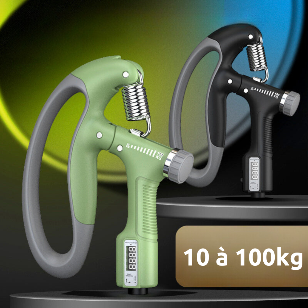 GripMaster Pro est l'outil ultime pour renforcer votre prise et les muscles de vos mains, poignets et avant-bras. Grâce à sa résistance réglable de 10 à 100 kg, il convient aussi bien aux débutants qu'aux athlètes expérimentés. Le compteur intelligent intégré permet de suivre vos répétitions et de mesurer vos progrès en temps réel.